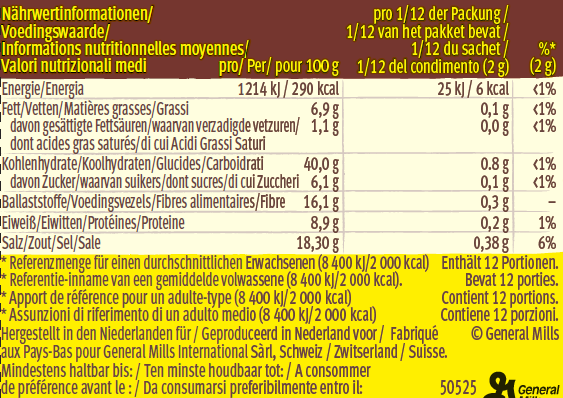 Tous les produits Old El Paso™ peuvent être modifiés à tout moment. Nous recommandons donc de toujours vérifier la liste des ingrédients sur les emballages de nos produits avant de les acheter, afin d’en déterminer le contenu précis.